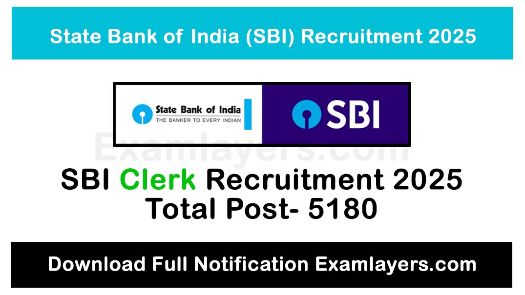 State Bank of India (SBI) has released the official notification for Clerk (Junior Associate) Recruitment 2025 with 5180+ vacancies across India. Eligible graduates can apply online from 6 to 26 August 2025. Check full details on vacancies, fees, eligibility, and exam dates only on ExamLayer.com.